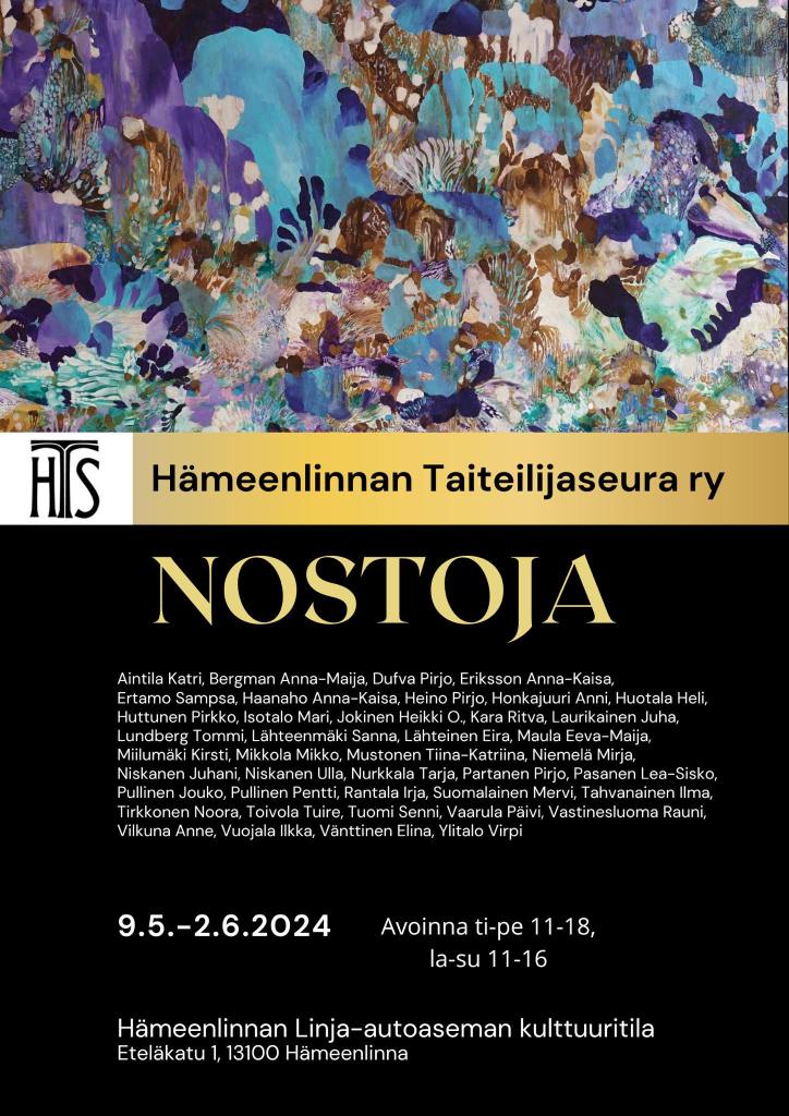 Nostoja – Hämeenlinnan Taiteilijaseuran näyttely, Hämeenlinnan linja-autoaseman kulttuuritila, Hämeenlinna 9.5.-2.6.2024