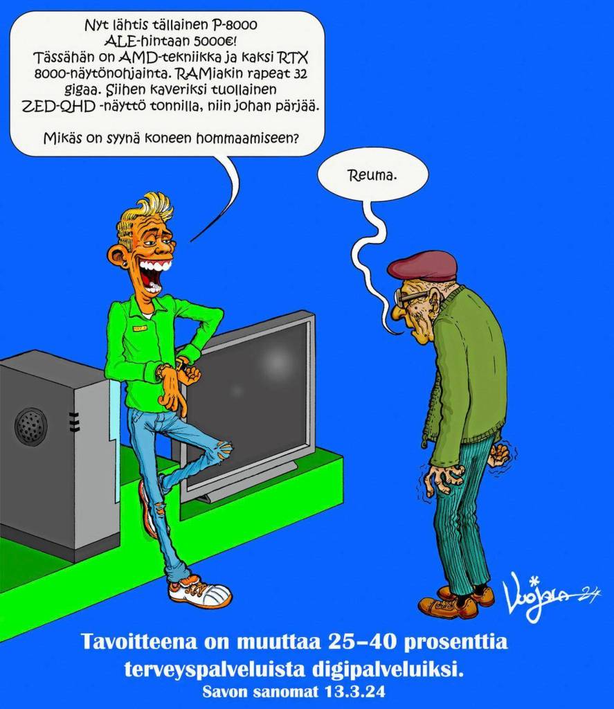 Pilakuvia / karikatyyrejä Sekalaisia pilakuvia Sanomalehtipilakuvia (julkaistu Savon Sanomissa, Keskisuomalaisessa, Etelä-Suomen Sanomissa, Hämeen Sanomissa ja Karjalaisessa) Savo-aiheisia sanomalehtipilakuvia (julkaistu Savon Sanomissa) Tilauspilakuvia Digitaalinen taide, 2022 Digitaalinen taide, 2022 Pan Pastel, 2023 Digitaalinen taide, 2025 Vuoden karikatyyppi 2024, Kalle Rovanperä, Värikynä, Pan pastel, 2025